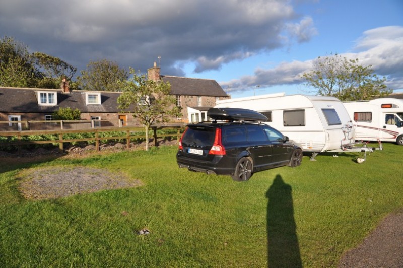 Derselbe Campingclub wie in Edinburgh, ebenso guter Platz, £21,90. Melrose war ein guter Abschluss, hübscher Ort, Campingplatz und sehenswertes Melrose Abbey liegen im Ort, nur wenige Gehminuten, außerdem haben wir in Melrose hervorragend diniert.