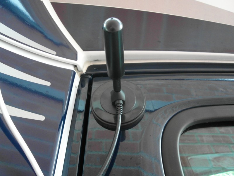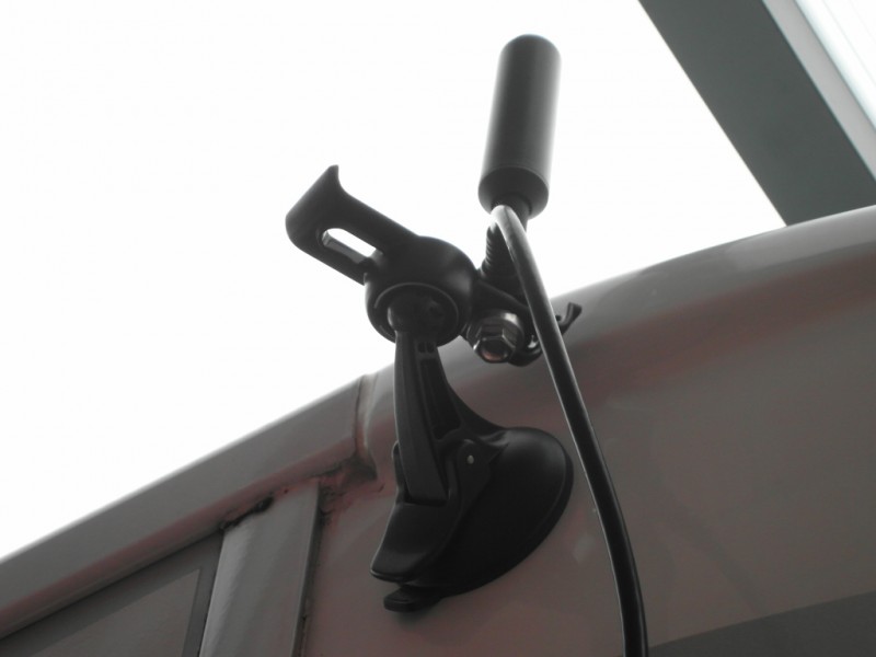 Was mir aber hier garnicht gefallen hat ist der Magnetfuß. Bei unserem TI hat natürlich nur das Fahrerhaus Metall-Außenwände 8) . Somit ist die Antenne für mein dafürhalten zu tief angebracht. Ich habe deshalb folgende Lösung mit einem Saugfuss gewählt: