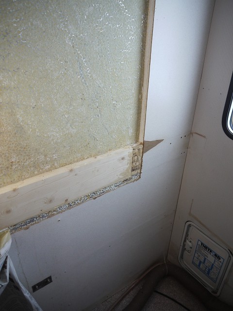 Auf jeden Fall wurde der Spiegel an der Rückwand blind... und dahinter war dann ca 0,4qm Gammel an der Oberfläche und die unter dem Loch verlaufende Querlatte auf 70cm weich gefault. Das habe ich alles großzügig entfernt.