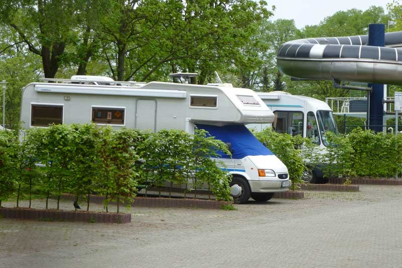 einfacher, stadtnaher Platz in unmittelbarer Nachbarschaft des städtischen Hallenbades. Unmittelbar neben dem Stellplatz ist auch noch ein Campingplatz, auf den man ausweichen kann, wenn der Stellplatz mit seinen 15 Plätzen belegt ist. ...und der Schwimmbadbesuch ist in den Stellplatzkosten mit drin (wie ihr seht)
