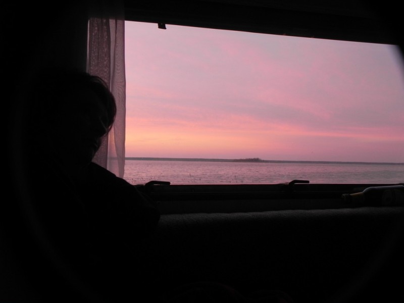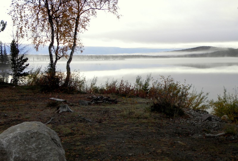 ![]() oder ganz einsam und abgelegen an einem eisigkalten Herbsttag frühmorgens in Lappland auf einem Angelparkplatz