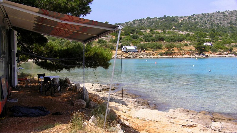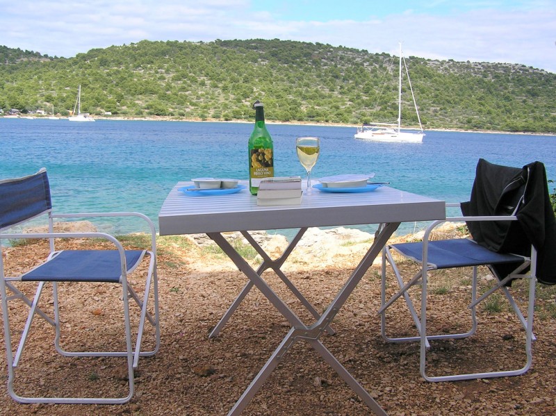 . Frühstücken (pudelnudel - natürlich 8) ) mit Blick über die Bucht nur für autarke Womos, die nicht zu tief liegen, Ups und das war kein Frühstück, sondern das Fastfood-Dinner, aus dem Wasserbad, aber mit einem Hauch von Life-Style :-) .... Für mich sind solche Momente auch mit ein Grund warum wir ein Womo fahren.