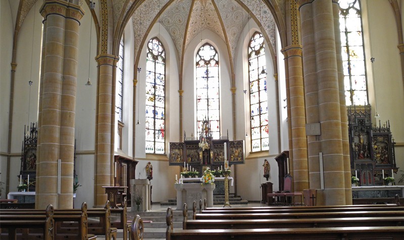 Hier das Bild vom prachtvollem inneren der Kirche mit den beiden Seitenaltären.