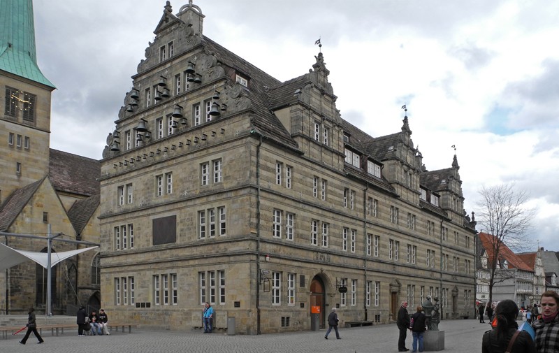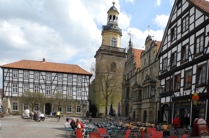 Die Stadt hat eine Menge an historischen Gebäuden zu bieten. So steht am Markt das prächtige Hochzeitshaus, siehe Bild oben. Daneben sieht man noch ein Stück der St. Nikolai-Kirche, gegenüber liegt das Dempterhaus, als nächstes Bild gezeigt.