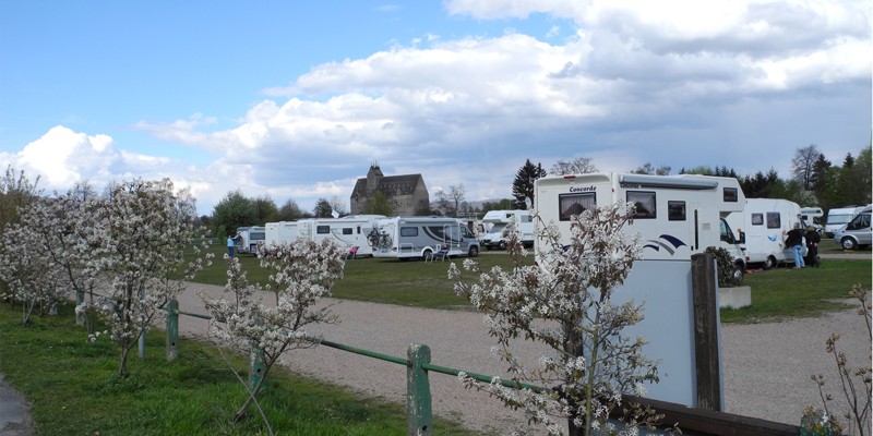 Der Stellplatz am Schloss ist gut angelegt, es gibt teilweise Parzellierung durch Hecken. 5€ für den Platz sind am Parkautomat zu zahlen, Strom kostet 1€ für 12 Std. Entsorgung incl.