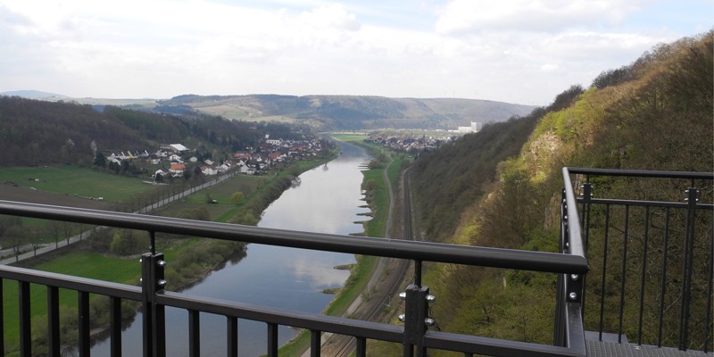 Mit den Rädern ging’s vom Campingplatz den Weserradweg lang bis zu den ersten Häusern in Würgassen. Die Räder dort abgestellt und einen schön angelegten 2 Km langen Waldlehrpfad stetig bergauf zum Sky – Walk gewandert, die Aussicht genossen und das Ganze wieder zurück, schön war’s :)