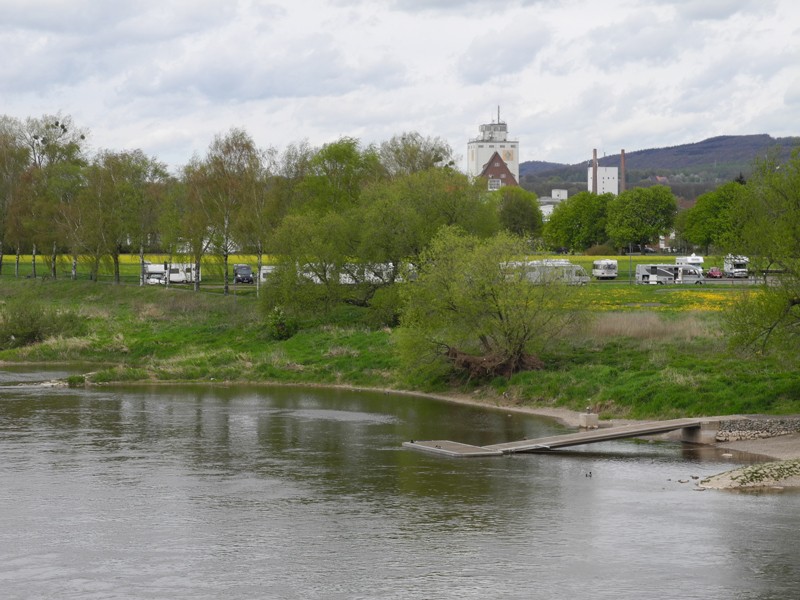 Wir haben den Campingplatz am Weserufer für die nächsten beiden Tage ausgewählt. Der Stellplatz vor dem Camping gefiel uns nicht wirklich. Das Jubiläumsangebot 14€ plus 0,5€ KWh, zzgl. Kurtaxe für den Rasenplatz direkt am Weserufer war genau passend.