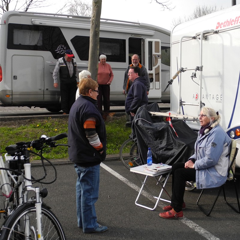 Der Stellplatz auf dem Platzplatz kostet 5,0€ + 2,50€ pauschal für Strom zzgl. Kurtaxe. Das Wetter war kühl, der Wind lausig kalt und es gab auch mal einen Schauer. Zwischendurch ließ sich die Sonne sehen, was zu einem oder anderen Plausch genutzt wurde.