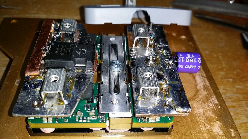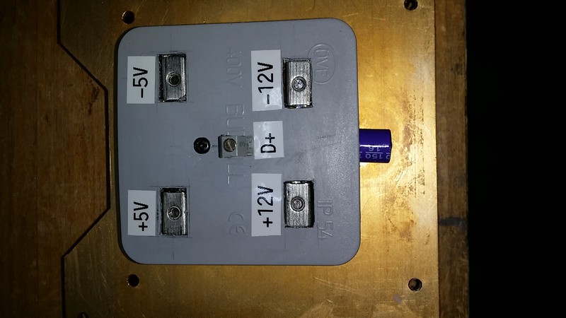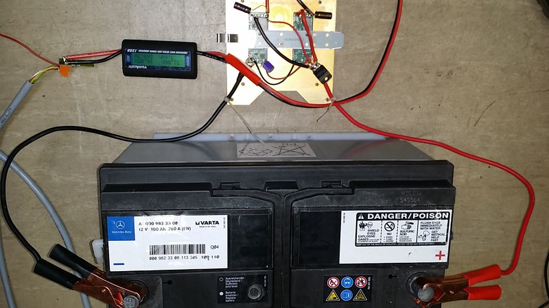 2 Stück muRata UWE-5/15-Q12 siehe --> Link parallel. Das ist etwas modernere Technik als die üblichen Booster. Ein Modul sieht so aus. ![]() Meine Versuchsschaltung ![]() Der fertige Aufbau ![]() Mit Abdeckung ![]() Das ist der Deckel einer normalen Aufputz-Verteilerdose(72x72mm). Die Schraubverbindungen sind für 30A zugelassen. D+ schaltet das ganze ein. Die Doppeldiode sorgt für den Verpolungsschutz. Stromaufnahme im ausgeschalteten Zustand ist 10mA. Der Kühlkörper wird bei Dauerbelastung(25A) und passiver Kühlung handwarm. Uwe