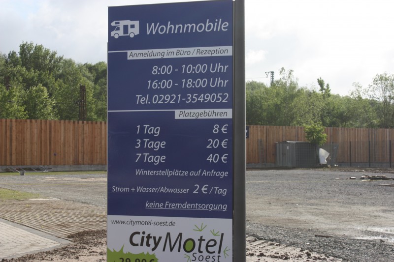 Die Gebühren sind in der Anmeldung vom City Motel zu endrichten. Der Stellplatz ist noch teilweise im bau. Er bietet ausreichend Platz für c.a.20 Mobile. Die SP sind mit Strom ausgerüstet und mit 10 Amper abgesichert.