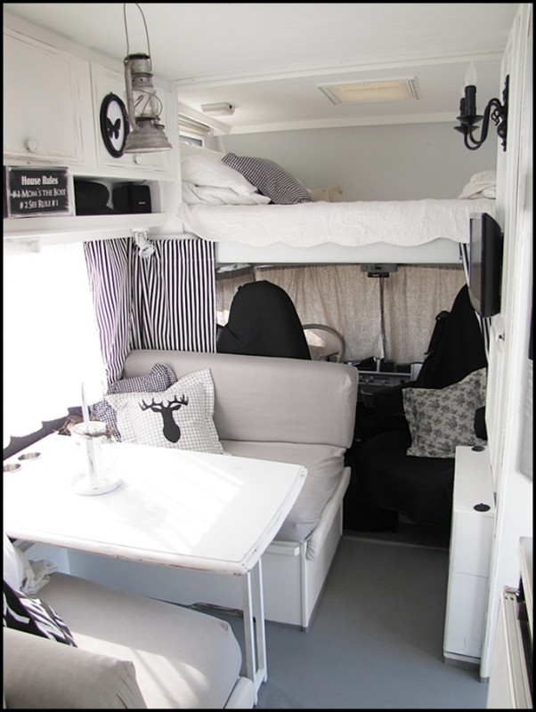 Alles kann während der Fahrt dran bleiben, fällt nix runter bis auf den Kerzenleuchter überm Bett, der wird abgenommen und das große Windlicht ist für draußen gedacht und steht auch nicht während der Fahrt auf dem Tisch.