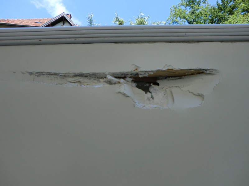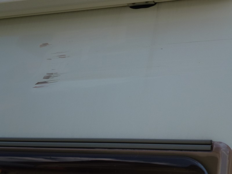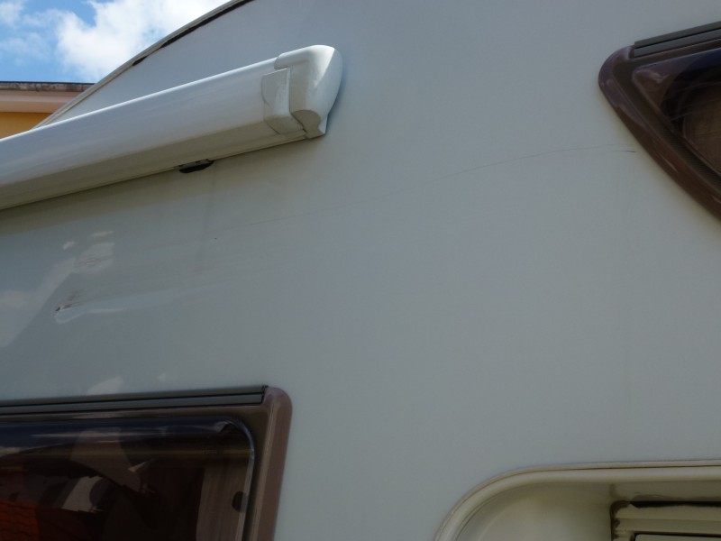 Hallo habe nochmal ein Bild angehängt wo man den Schaden besser sieht, befindet sich Fahrerseite ca. mittig vom Womo. Bin am überlegen ob ich genau an der Stelle eine Aussenbeluchtung anbringe . Wobei das garnicht so schlecht wäre da ich auf dieser Seite bei Nacht auf dunklen Stellplätzen das gut gebrauchen könnte. Na und wer hat das schon ne beidseitige Aussenbeleuchtung :-)