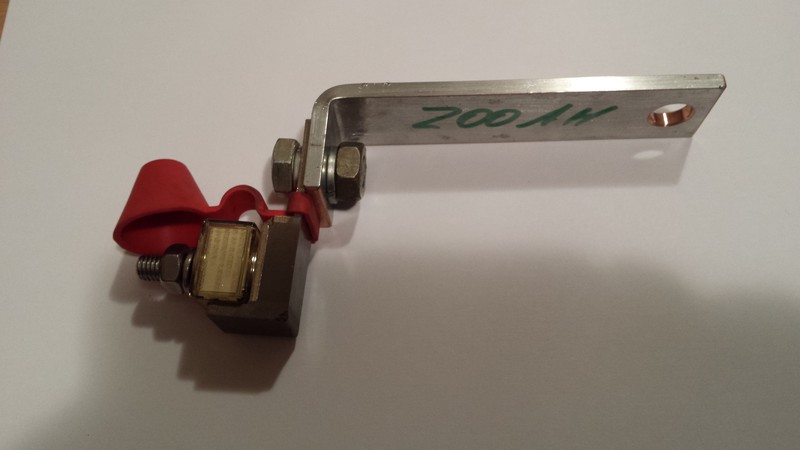 Das besondere daran ist noch,das die Sicherung bis 300 A gleich mit dabei ist .Das Bild ist vom Prototyp. Material ist reines Elekrokupfer verzinnt.|