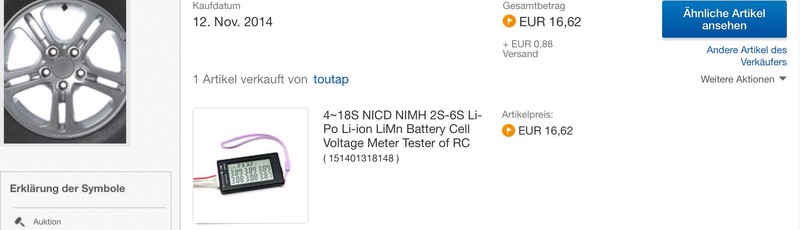 Das war ein ebay Kauf (mit den entsprechenden Suchkriterien von (tester, voltage, Li, etc.) finden sich diverse Geräte (Ev. Suche auf China ausweiten ... :wink: ):