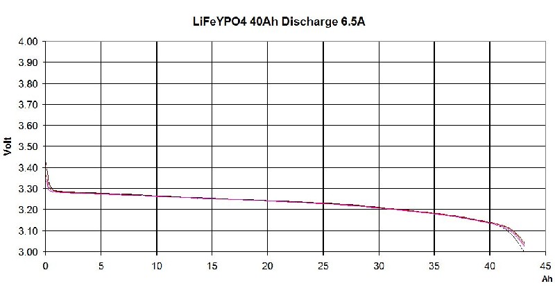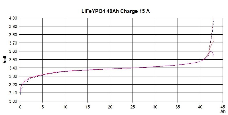Das ist für mich einer der wesentlichen Gründe, auf die 100%-Volladung zu verzichten. Sollte mir abseits der Zivilisation ein Problem am Akku auftreten, wird es vermutlich wesentlich einfacher sein, übergangsweise Blei-Akkus für den Notbetrieb aufzutreiben. Ich habe das mit Brückenkabel gelöst.Sollte doch mal ein Balancer oder ein SSR abrauchen kann ich das SSR überbrücken.Bis jetzt war es aber noch nicht notwendig. Notfallkonzept: ganz klar, da habt ihr natürlich alle recht. Wenn mal was abraucht, oder ein Zellendefekt auftritt steht man da. Die LiYFePO4 bekommt man nicht an jeder Ecke und die Starterbatterie ist recht klein. Dabei könnte allerdings berücksichtigt werden, dass man für so einen Fall normalerweise nur eine LiYFePO4 Zelle als Ersatz mitführen muss (1/4 der Batterie) ebenso einen Ersatz-Laderegler ... war gerade am Womo und bin von meinem China Solarregler angenehm überrascht. Alle Zellen stehen bei 3,65-3,69 Volt und sind randvoll....... mfg Jo Hallo, bin neu hier und habe mit intresse die Artikel in diesem Thread "durchgearbeitet". Am 15.8.12 (Seite 6) stellte superduty in einem Artikel die Bilder einer Excel-Tabelle über die Berechnung und die von Ihm verbauten Teile ein. Die Bilder der Tabelle sind für mich nicht lesbar, und ich glaube das liegt nicht an meiner Sehkraft. Leider kann ich aufgrund meiner kurzen Zugehörigkeit superduty nicht direkt anschreiben, deshalb auf diesem wege meine Frage: Kann ich bessere Bilder der Tabelle oder die Tabelle selber bekommen??? Vielen Dank für eine Antwort Dirk Unsere Stromversorgung klappt nach 247 Tagen noch immer sehr gut. Die Akkus (aktuell bei 375 Ah von 400) liegen zwischen 3,356 V und 3,359 V, weisen also eine max. Differenz von 0,003 V auf, das ist super, ganz hervorragend, so gering war die Differenz noch nie. Wir sind sehr froh über die LiFeYPO-Zellen und den Philippi Batteriecomputer. Das sehr geringe Driften bestätigt die gute Funktion der LiPro1-1 Balancer und der verwendeten Ladegeräte (Votronic-SR500DUO Digital + WAECO PerfectCharge IU1512) :) Als wir im Winter an der Steckdose hingen, hatten die Balancer ab und zu Arbeit. @ diwo Hatte dir eine Kurznachricht geschickt. Auch bei mir ist alles in besster Lage.Gestern ging der Laderegler auf Monatsausgleichsladung.Sehr interessant das die Balancer 450mA bei aktiven Balancer verbraten haben.Wärme war nicht zu spüren.Nach einer Stunde wieder 14,4 Volt .Zellen alle aufs tausentstel gleich.Anlage läuft jetzt 370 Tage.Akku 1,5 Jahre alt. Hallo Sonnentau & Superduty, scheint sich gut zu bewähren: LiYFePO4 und die LiPro1-1 Balancer mit 247 und 370 Tagen Driftbeobachtung und der Feststellung, dass sich Zellenunterschiede immer mehr abbauen! Wenn die Drift gut im Griff ist und die Über- und Unterspannungsabschaltung immer eingehalten wird kann man meiner (LiFePO4-) Erfahrung nach, sogar auf mehr als die angegebenen Zyklen hoffen. Bin im Übrigen ganz abgekommen von der Idee der Einzelzellenladung, die bei Solarladung noch einigermaßen machbar wäre, bei Limaladung und 230V-Ladung jedoch viel zu viel Aufwand wäre. Die Drift hat natürlich auch mit dem Zellenwirkungsgrad zu tun, deswegen erschienen mir anfangs die Ballancerströme von max 1A zu gering für Zellen ab 100Ah, aber Eure Werte zeigen, dass es genügt. Glückwunsch zum gelungenen System. Wäre das nicht ein gutes Modell für Elektrofahrt? Am Anfang hatte ich gedacht,das mit 1 A Balancerstrom es zu knapp werden würde.Viele berichteten von mind 5 A und mehr.Das stimmt auch,wenn der Balancer nicht aktiv regeln kann.Das heist ,das die gesammte Ladungsenergie über einen Lastwiederstand verheizt werden müßte.Es bedeutet aber sehr viel Wärme und immer noch keine Sicherheit ob dies ausreichen würde.Durch die aktive Schaltung mittels SSR Relais wird einfach die Ladung so lange unterbrochen,bis der Wert des Balancing wieder notwendig wird.Erst wenn alle Zellen gleich sind schaltet das Ladegerät ganz normal ab.Diese Abschaltung sollte daher ein wenig unterhalb der Balancerspannung sein.Z.B. 14,4 Volt. Auch bei der Lastabschaltung ist volle Sicherheit gewährleistet.Kommt eine Zelle schneller an der untersten Genze an so schalten die SSR die Last weg.Eine kleine Schaltverzögerung verhindert ein zu schnelles an- und abschalten.Durch diesen vollautomatischen Prozess ist kein Spielraum für: es geht vielleicht noch eine Weile oder doch lieber nicht?. Für alle die Urlaub machen wollen ohne sich immer Gedanken machen zu müssen ob es dem Akku jetzt gut tut oder nicht haben diese Probleme nicht mehr!! Mit einem Akku von 100 Ah kann man also ohne Sorgen Kaffe kochen und sich die Haare föhnen. Werde mal ein kleinen Film anfertigen. Guten Morgen, Ich habe schone ein bischen über die LiFeYPo4 gelesen, aber meistens geht es dann um 12V Systeme. Ich möchte gern 8x LYP400AHA LiFeYPo4 in Reihe schalten und es als 24V System laufen lassen. 1.Wenn die Zellen voll sind, wieviel Spannung haben Sie dann? 3,7V pro zelle? 2.Ich habe einen Outback FM80 und suche eine optimale Ladespannung für die Zellen (Im Outback frei einstellbar), welche Ladespannung würdets ihr da empfehlen, und solte man verschiedene Lademodis benutzen (Float, Absorbtion....) oder brauchen die LiFeYPo4 das nicht. Der Hintergedanke ist, das ich beim Outback den frei programmierbaren Ausgang so steuern will, wenn 95% der Kapazität (3,6Vpro Zelle?)erreicht ist ein SSD Relai gesteuert wird, womit ein Verbraucher (Elektroheizer oder Boiler......) geschaltet wird und den Überschüssig momentan produzierten Strom verbraucht. Bei 90% der Kapazität sollte der Ausgang wieder geschlossen werden. Das Problem wird bestimmt sein, das beim Aktivieren des Ausgangs mit einem größeren Verbraucher, die Spannung kurzzeitig zu stark einbricht und der Outback den Ausgang gleich wieder schließt? Gestern habe ich die Lade- und Entladecharakteristik der Einzelzellen eines fast neuen 40 Ah-Blocks mit 4 Zellen gemessen. Es war kein Balancer angeschlossen. Für e