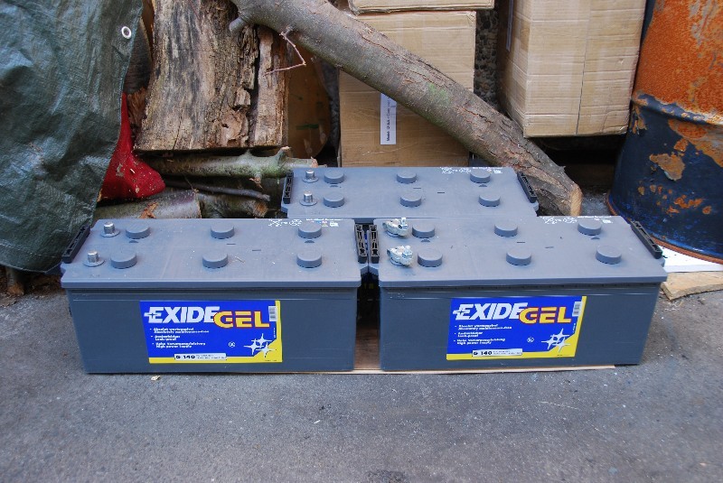Sonntag um 8 Uhr wurden dann die 3 Gel-Akkus von den Verbrauchern getrennt und ausgebaut. 3 mal 49,5 kg stehen seither neben unserem Mobil.