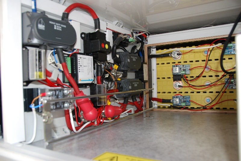 Wenn es die Platzverhältnisse erlauben, ist es sicher nicht verkehrt, wenn man zwischen bestehender Bordelektrik und den Winston LYP400AHA-Zellen eine eigene Schalttafel verbaut, so ähnlich wie ich das gemacht habe.