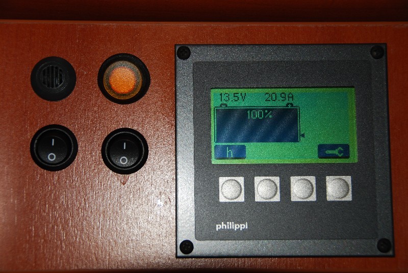 Der Batterie-Trennschalter, über die LVP-Sicherheitsschleife gesteuert, ist ein zentrales Bauteil der Anlage. Die Bordelektrik muss auf jeden Fall über den Trennschalter laufen und muss komplett durch den Trennschalter automatisch über die LVP-Schleife getrennt werden können. Hier darf nicht gemogelt werden, denn eine Tiefentladung reicht und die Zellen sind unwiderruflich defekt (bei Blei sind dafür meist mehrere Tiefentladungen nötig, bei Lithium reicht eine einzige). Meines Wissens gibt es bisher ausschließlich den Philippi Trennschalter (TSA 260-12V) zum Schalten von 260 A, welcher sich über SSRs steuern lässt.