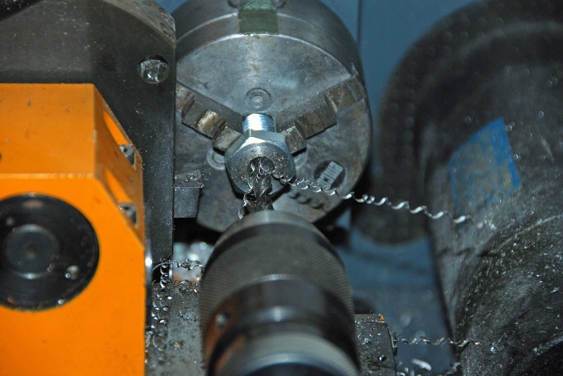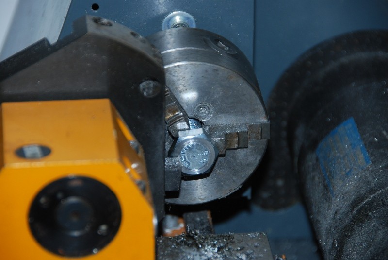 Die M14er Schrauben wurden in die Drehbank eingespannt um den Kopf plan zu dreht.