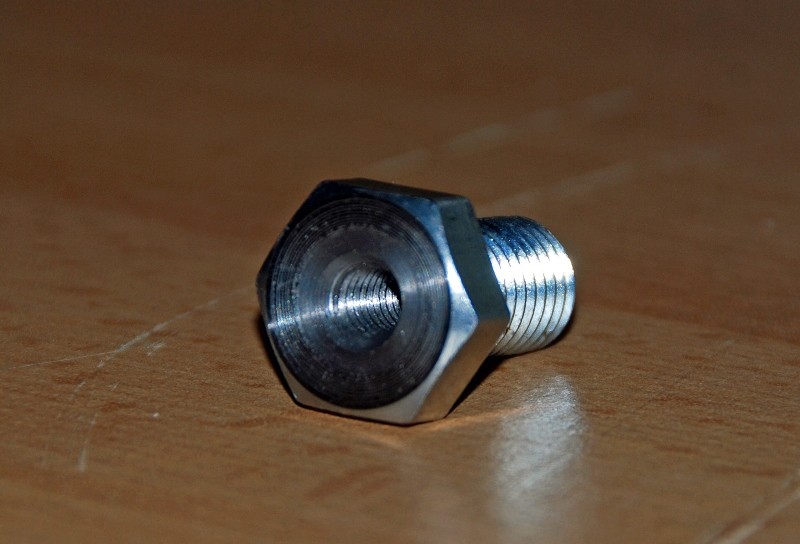 Ja das ist natürlich ein Problem! Da hilft nur ein Flachstahl aus Kupfer mit einer Bohrung M14 auf M10.Platz wäre ja vorhanden.Frag mal beim Klempner ob die so was haben.Eine zweite Lösung die mir einfallen würde wäre: Die M14 Schraube in einer Dreherei auf M8 aufzubohren , plan zu drehen. und den print darauf zu schrauben.Ja das sind Überraschungen :shock: