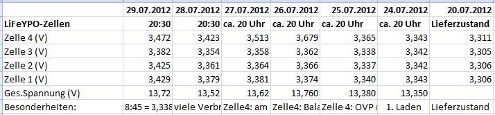 So wie ich das sehe, dürften damit die 13.000 Zyklen erreicht bzw. überschritten werden, bei denen die Czech Technical University Praque den Test einer Winston LFP90AH-Zelle abbrach, da ein „Ende“ mit defekter oder nicht mehr leistungsfähiger Zelle nicht abzusehen war.