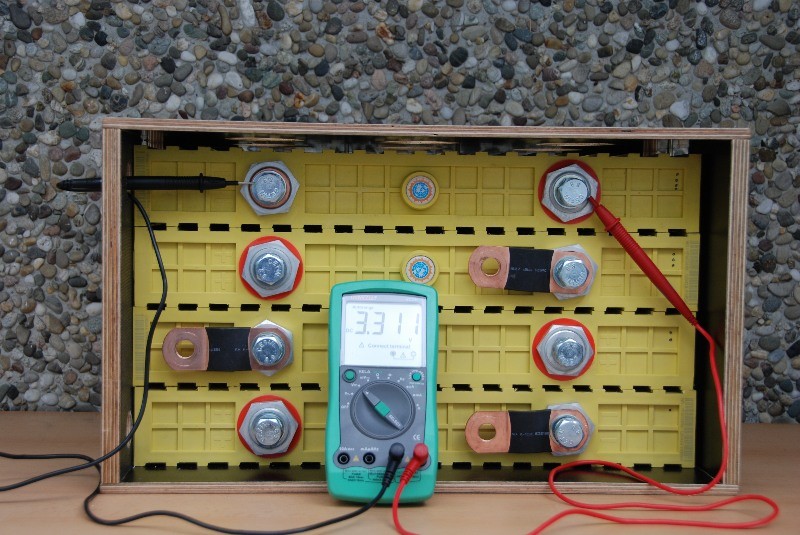 Bei der Höhe der Winston-Zellen sind durch die LIPRO1-1, deren Verkabelung und diverse Unterlagscheiben min. 5 cm hinzuzurechnen. Am besten gleich den Akkukasten entsprechend höher anfertigen, damit Anschlüsse und LIPO1-1 zuverlässig geschützt sind.