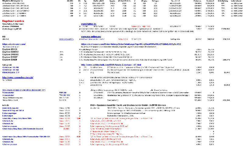 Ich musste mir erst monatelang das nötige Wissen aneignen, was sicher daran liegt, dass ich alles ganz genau geklärt haben will (weshalb ich dann auch keines der fertigen Systeme von Leab, Mastervolt, Transwatt usw. verbaute – die zudem auch zu raumgreifend sind und teilweise Ladegeräte und Wechselrichter aus dem eigenen Lieferprogramm verlangen = nochmals teurer) Hierbei gilt mein besonderer Dank dem Forumsmitglied Sonnentau. :dankeschoen: