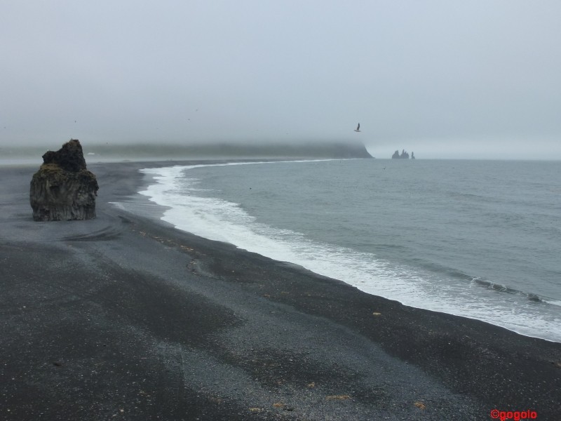 Das Wetter bessert sich aber nicht – trotzdem fahren wird in die Þórsmörk um an die Nordseite des Eyjafjallajökull zu kommen Und siehe da: im ganzen Land ist es schlecht, nur in der Þórsmörk ist es trocken und es scheint die Sonne da dort im Tal ein eigenes Microklima herrscht. Über den Hochlandausflug über die F249 mit den vielen schönen und tiefen Furten nach Þórsmörk erfahrt ihr mehr in meinem Bericht über die Hochlandstrecken. Ich möchte es ja spannend machen! Am Südzipfel Islands, in Dyrhólaey sehen wir nochmals Papageientaucher, diese putzigen Kerle. Offenbar sind sie kurz vor dem Abflug (Mitte August) ins offene Meer, wo sie sich dann den Winter über aufhalten. Man könnte hier stundenlang fotografieren bis der Auslöser des Fotoapparats glüht – allerdings darf man hier nicht so nahe an die Vögel rangehen wie in Látrabjarg. Dyrhólaey mit schwarzem Sandstrand: