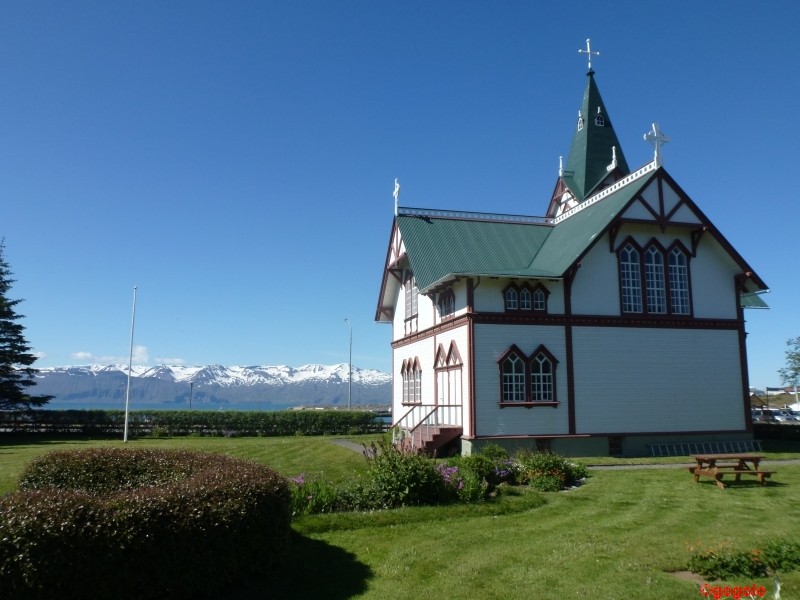 Husavik ist auf Island wohl das Synonym für Walbeobachtungsfahrten. Wir sind nicht mit dem Boot rausgefahren, denn Wale hatten wir schon in Norwegen gesehen und Gogoline verträgt die Schaukelei auf so kleinen Schiffen nicht. Trotzdem ist der Ort sehr sehenswert. Kirche von Husavik: