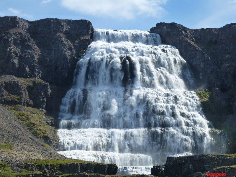 Auf der Karte schauen die Entfernungen innerhalb der Nord-Westfjorde gar nicht so gewaltig aus. Wenn man aber berücksichtigt, dass fast jeder Fjorde vollständig ausgefahren werden muss, dann dauert das so seine Zeit. Aber diese Zeit nehmen wir uns gerne, liegen doch prächtige Landschafen vor uns. Malerische Wasserfälle kleinerer und größerer Art entspringen den Berghöhen und rauschen zu Tale. Am beeindruckendsten (in den Nord-Westfjorden) fanden wir den Dynjandi-Wasserfall.