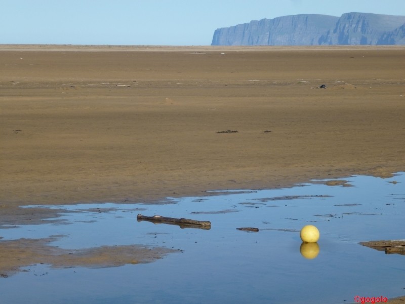 Es ist das erste Mal, dass ich mit dem Gogolobil eine Wegstrecke nicht bewältigen konnte. Nicht dass der Weg zu steil gewesen wäre oder die Wasserdurchfahrten zu tief – nein, schlichtweg wir sind mit unseren 3,45m zu hoch gewesen für einen Weg am Rande des Meeres mit einer nur 3m hohen Ausspülung zum durchfahren. Nachdem mich ein ortsansässiger Farmer gewarnt hat, sind wir umgedreht. Die Strecke wäre aber sehr schön gewesen… Es entschädigt uns aber der Verzicht auf diese Strecke eine Fahrt nach Melanes zum Raudisandur. Das ist ein gelber, fast rötlicher Sandstrand, den man auf Island so nicht erwarten würde.. Es herrscht absolute Ruhe in diesem traumhaften und weltabgeschiedenen Tal, der nur mit einer Fahrt über eine recht ruppige und steile Piste erreicht werden kann. Den Tipp für diesen Ort habe ich von einem sehr netten Isländer erhalten.