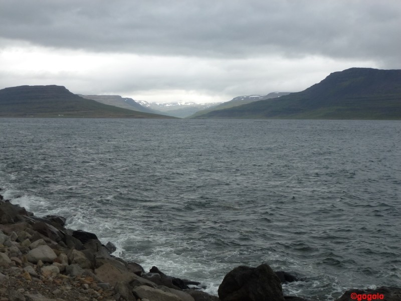 Auch werde ich den Thread vorläufig wieder für Kommentare und Fragen öffnen, denn diese sind das Salz in der Suppe jedes Reiseberichts. Ankunft in Island: Die neue Norrøna stampft durch die ruhige See und bringt uns und das Gogolobil sicher und pünktlich nach Island. Zunächst bereisen wir den Osten und Nordosten des Landes, Gebiete, von denen ich heute berichte. Das Wetter ist schön und warm - ideal zum reisen. Der Norden und die Ostfjorde Islands: Gleich am ersten Tag fuhren wir nach der Verzollung unserer mitgebrachten Lebensmittel (wir waren wohl die einzigen, die etwas angegeben haben – niemand anders fuhr durch das rote Zolltor…) zum Einkaufen nach Egilstadir. Dort holte ich mir auch einen Prepaid-Internetstick des Netzanbieters Siminn mit 4GB für ganz wenig Geld (12,61€). Auch isländisches Geld wurde am Bankautomaten mit der VISA-Card gezogen. Plasikgeld ist in Island gang und gäbe und tanken geht ausschließlich mit der Kreditkarte. Eine Tankstelle, wo man zum bezahlten hineingeht, gibt es hier nicht. Man steckt die Karte, schätzt den Betrag der fürs tanken benötigt wird und tankt. Wenn zu hoch geschätzt: macht nichts, es wird nur der tatsächliche Betrag meinem Konto belastet. Auch die erste F-Straße (Allrad-Straße # F946) kam am ersten Tag unter die Räder. Und tatsächlich, es wurde nicht nur der Allrad benötigt, eine Steilauffahrt im groben Schotter machte sogar den Einsatz einer Differentialsperre erforderlich, damit die Räder nicht durchdrehen. Ein toller Übernachtungsplatz entschädigte uns dafür. Unser einsamer Übernachtungsplatz am Fjord: