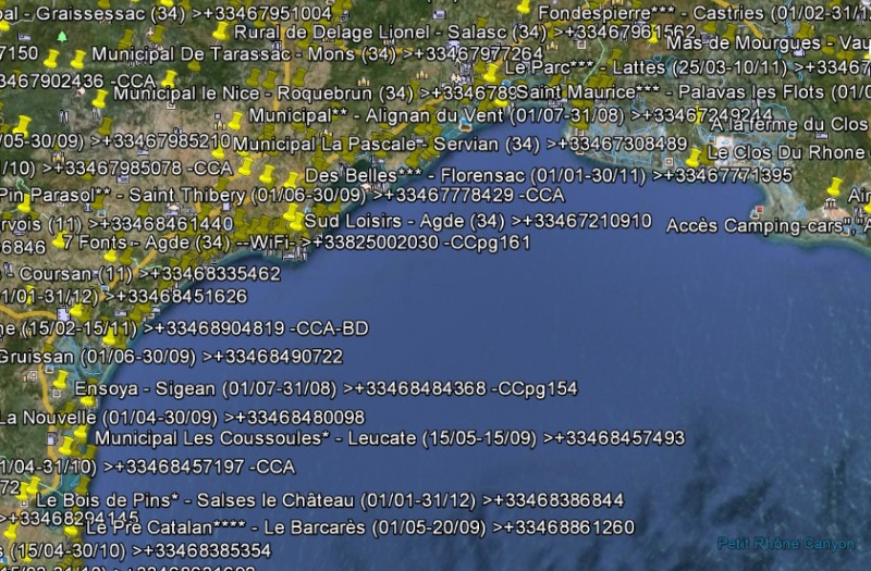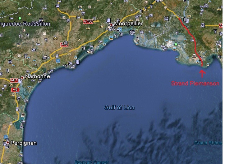 Hallo, such mal im Netz: archies campings (Link kann ich hier nicht einstellen, weiß nicht was der Schwachsinn soll) kannst du CPs runterladen und in GoogleEarth darstellen oder starten, öffnet dann in Google Earth. Hier sind vor allen Dingen die CP Municipal zu beachten, von denen es zwar wenige am Meer gibt. aber die sind halbwegs bezahlbar, ansonsten sind die Preise in der Hochsaison horrend wenn du überhaupt etwas bekomst. Womo-Stellplätze am Meer gibt es in: Serignan-Plage, Les Cabanes des Fleury (Aude-Mündung), Narbonne-Plage, Gruissan Plage de Chalets, Leucate-Plage, Saint-Pierre sur Mer. In Port la Nouvelle gibt es einen riesigen Sandstrand, auf welchem man fast bis ans Wasser fahren kann. Übernachten ist allerdings ausdrücklich nicht erlaubt. Es gibt in Port la Nouvelle aber einen großen Womo-Stellplatz, der allerdings nicht gerade idyllisch liegt. Wenn du ein bisschen Französich kannst, hilft dir auch diese Seite ganz gut weiter, das sind Womo-Stellplätze, größtenteils mit Fotos und Berichten: campingcar-infos. com Ansonsten schau dir die Küsten-Gegend mal auf GoogleEarth genau an, dann wirst du sehen können wo der größte Rummels sein wird, z.B. unterhalb von Agde und unterhalb von Leucate-Plage ist es teilweise ganz gruselig... Wünsche dir schönen Urlaub in dieser (nicht überall) tollen Gegend und sag nicht ich hätte dich nicht gewarnt .. . :D Aber du hast recht was die Temperaturen angeht, ist nicht mit Atlantik zu vergleichen. Kai