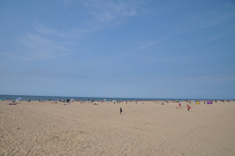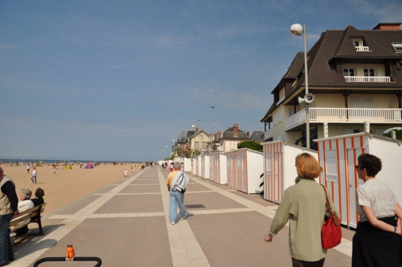 Strand und Promenade von Houlgate nach einer Steigung von 125m auf einer Laenge von 500m. Der Lenker kam mir kurzfristig entgegen.