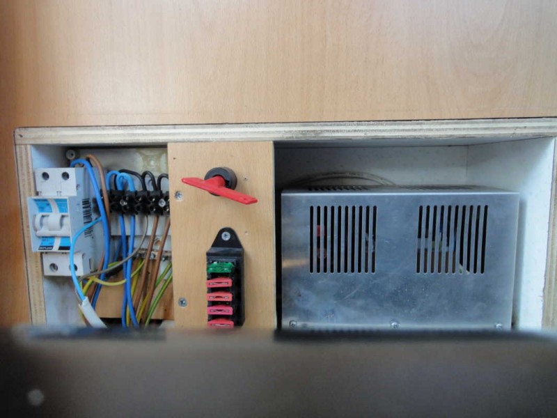 In der uns vorliegenden Bedienungsanleitung für den Wohnbereich lässt sich lediglich die Belegung der Sicherungen (Elektroblock) für die Hymermodelle Swing CSW544-K und CS554 finden. Für unseren CS 494 fehlt eine Übersicht. Selbiges trifft für die Beschreibung des Panels sowie den Elektroblock zu. Leider sind wir auch nicht im Besitz eines Stromlaufplanes, welcher laut Bedienungsanleitung dem HYMER-Reisemobil ursprünglich gesondert beigelegt gewesen sein soll.