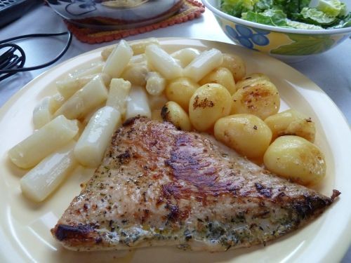 ![]() Kräuterputenbrust an franz. Kartöffelchen mit Schwarzwurzelgemüse. Lecker! Das Schwarzwurzelgemüse ist Spargel :D Wie süß... Bruno im Beet... :D
