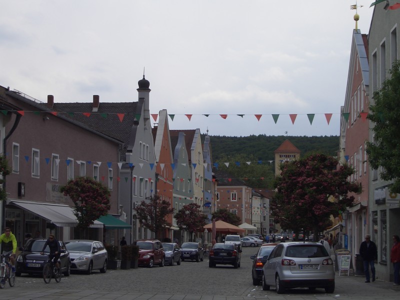 Nächste Station ist Essing. Ziemlich enge Stadtdurchfahrt, aber wir wagens und parken vor dem Rathaus.