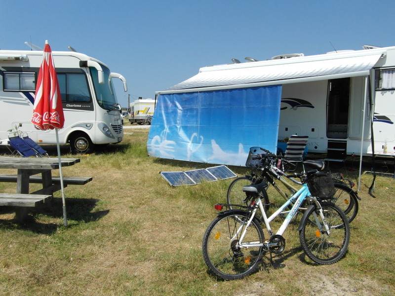 Gottseidank wars nicht so. Wir ergattern sogar einen Stellplatz mit Steckdose, und als Schmankerl sind fast 2 Kilowatt drauf. Passt.