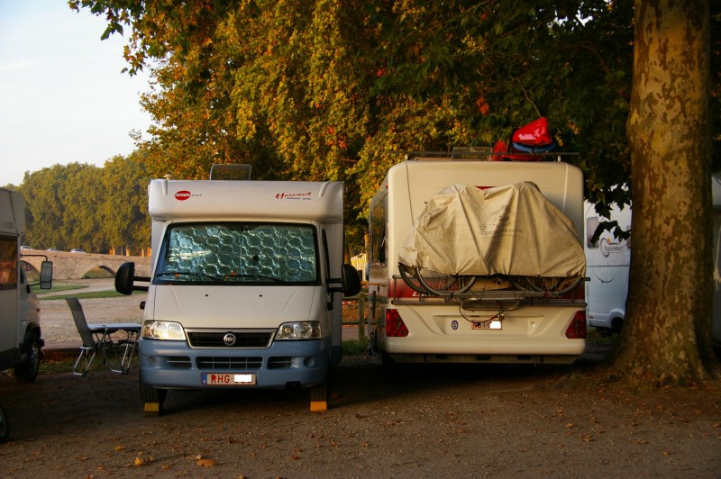 für France aber durchaus normal, so hatten wir es an der Bretagne sehr oft. Funzt gut, solange keine Belgier auftauchen :D war jedenfalls letztes Jahr meine Erfahrung Es sind halt tolle Stplätze am Cap usw, da gönnte man seinem Nachbarn halt auch was :D sitzen tut man -wenn außen- dann etwas abgesetzt ohne Markise. Man kann das überleben, ährlich :D :D Zumindest im Winter muss man nicht soviel heizen und im Sommer kann man sich als Kastenwagenfahrer prima in den Schatten eines Concord stellen. Ich seh da fast nur Vorteile :D muss ich doch noch mein liebstes Kuschelbild von letztem Jahr zeigen, der rechte Belgier befand, dass der linke Belgier zu viel Platz verschwendet. Er fuhr als letzter nah am Baum und riß sich oben am Boot an einem Ast.