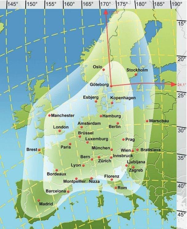 Zudem sollte man ungefähr wissen, wohin seine Antenne zeigt. Also auf welcher Achse der Schüssel das Signal einfällt. Bei unterschiedlichen Schüsseln ist der Einfallswinkel des Signals verschieden.