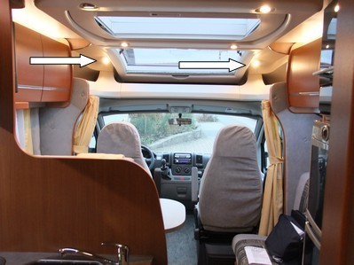 es ist ein teilintegrierter und oben über dem fahrer/beifahrer sitz sind 2 halogenstrahler im dach eingebaut.
