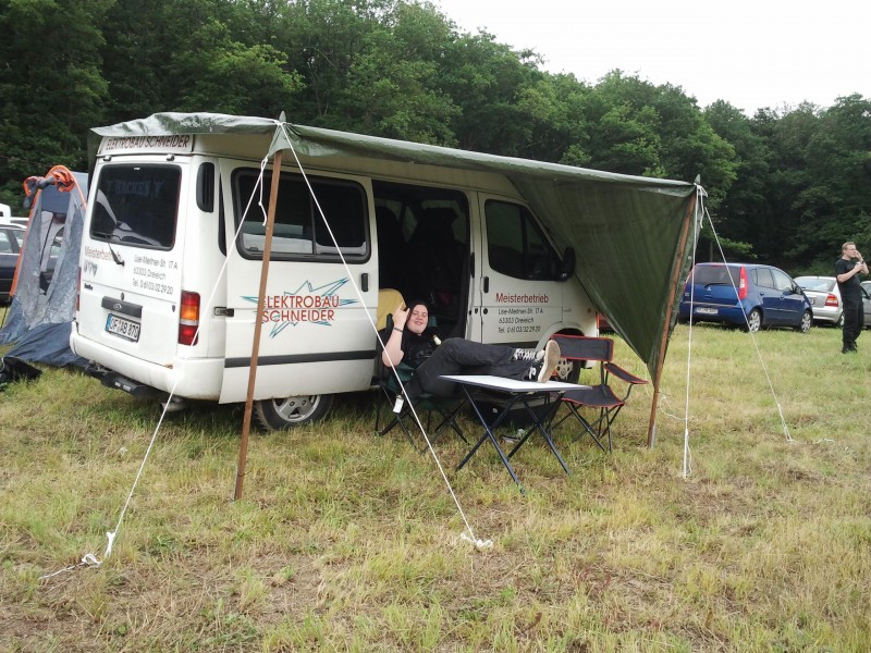 Übrigens würde ich auch gerne mit dem Womo auf Festivals fahren, nur ist mir unser Teil ein bisschen zu groß für solche Unternehmungen. ( und zu neu) Deshalb nehm ich nach Wacken oder, wie jetzt auf die Loreley meinen Ford Transit mit umklappbarer Rückbank und Porta Potty. Dieses Wochenende habe ich wieder gesehen, dass gerade ein eigenes Klo ungeheuere Vorteile hat, wenn die sanitären Einrichtungen unzureichend sind. :D Hier mal ein paar Bilder. Platz ist in der kleinsten Hütte.