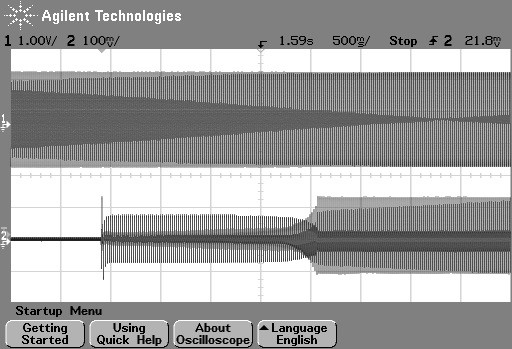 In den Oszillogrammen ist oben immer die Spannung und unten die Stromaufnahme.