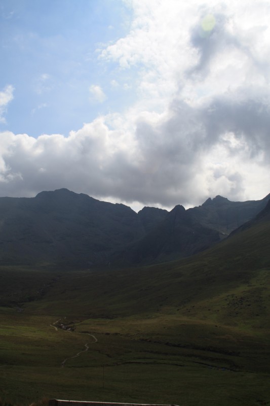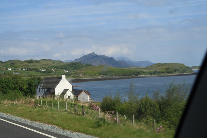 Wir fuhre erst mal links herum, wie auch sonst, und nahmen die keline Straße Richtung Elgol, ein Ort an dem man nicht sein muss, aber auf dem Weg dorthin fanden wir die alte Kirche Cill Chriosd mit uralten Gräbern und Bäumen.