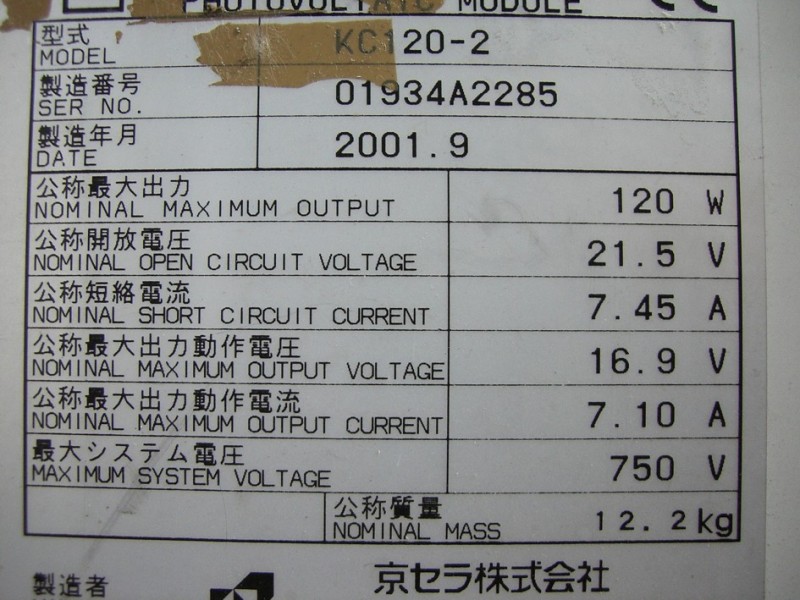 habe 2 Kyocera 120 W Module auf dem Dach und möchte ein drittes,