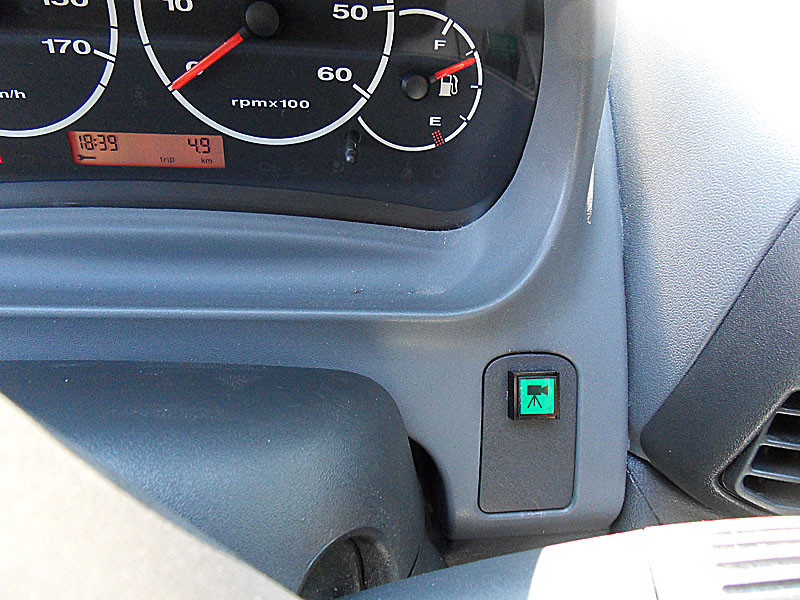 Wenn man alle benötigten Kabel zusammen hat, kann man alles verknoten und bequem hinterm Sicherungskasten unterbringen. Zuerst wollte ich, wie beim letzten Wohnmobil, die Cam mit dem Rückwärtsgang schalten. Das war mir dann doch etwas zu "aufwändig" und ich schalte die Kamera jetzt doch manuell. Als Platz wurde mir die Blindkappe rechts unter dem Tacho empfohlen, die normalerweise für die Scheinwerferverstellung beim Rechtslenker vorbereitet ist. Ein schicker Drucktaster noch fix mit einem gedruckten Symbol versehen und fertig ist der Einschalter.