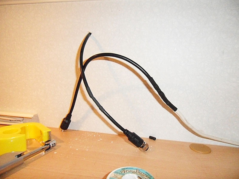Innen im Schrankfach wurde der Stecker wieder angelötet, sowohl an der Kamera wie auch am Steuerkabel