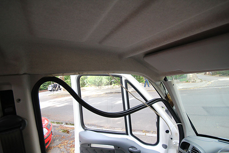 An der Fahrertür kann man das Kabel oben unter der Verkleidung verlegen, wenn man die Gummidichtung losmacht, und an der vorderen Säulenverkleidung zum Armaturenbrett herunterführen, bis es im Sicherungskasten herauskommt.
