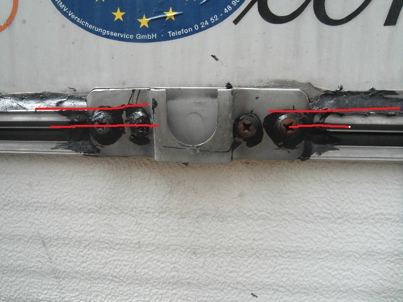 Man sieht auf dem Bild ganz genau, dass oberhalb der Schrauben gerade mal 3-4 mm bis zur Oberkante der Leiste sind. Viel zu wenig, dass wird nach einer Fahrt undicht.