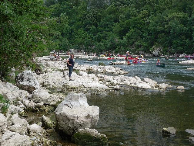 Bei leichtem Regen, der gegen Mittag aufhörte, führte unsere Strecke immer an der Ardeche entlang und wir erreichten Pont-d'Arc gegen 13:00 Uhr. Manchmal wurde es schon etwas eng.